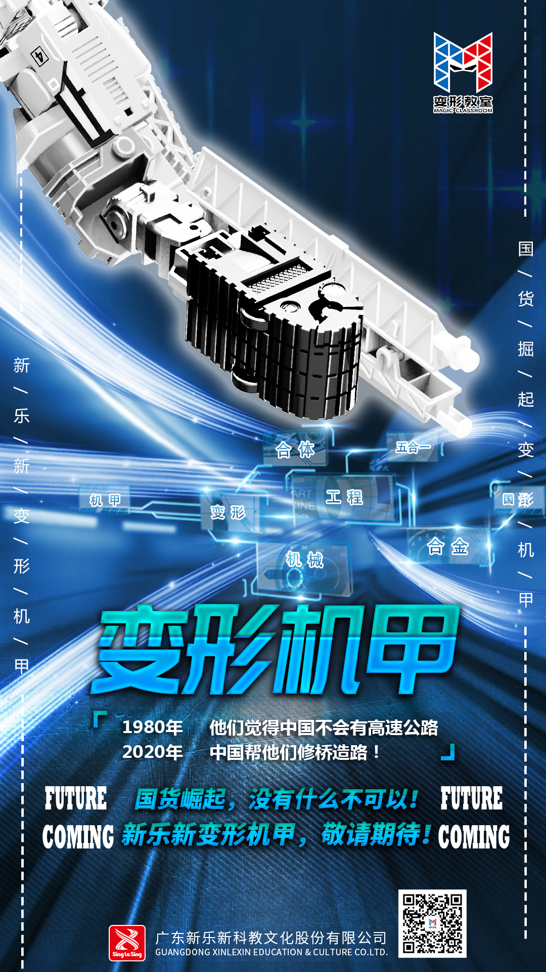 從此次發(fā)布的兩張預(yù)熱海報(bào)來(lái)看,第一張以基建工程為主。 文案的描述是: 1980年 他們覺(jué)得中國(guó)不會(huì)有高速公路 2020年 中國(guó)幫他們修橋造路! 國(guó)貨崛起,沒(méi)有什么不可以! 新樂(lè)新變形機(jī)甲,敬請(qǐng)期待! 海報(bào)暗喻改革開(kāi)放初期中國(guó)基建落后,外國(guó)人覺(jué)得縱使改革開(kāi)放了,中國(guó)基礎(chǔ)建設(shè)依舊會(huì)很落后。然而,現(xiàn)在中國(guó)獲得了基建狂魔的稱號(hào),其工程技術(shù)領(lǐng)先世界,還為幫助了其它國(guó)家提供基礎(chǔ)建設(shè)解決方案。 從海報(bào)文案來(lái)分析,此次變形教室推出的新品疑似與基建工程相關(guān)聯(lián)的產(chǎn)品。 而第二張預(yù)熱海報(bào),則把時(shí)間線定在了1985年。 1985年 他們覺(jué)得中國(guó)孩子不會(huì)有屬于自己變形玩具! 2021年 屬于中國(guó)孩子的變形玩具,配件多,能變形還能合體! 國(guó)貨崛起,沒(méi)有什么不可以! 新樂(lè)新變形機(jī)甲,即將來(lái)襲! 眾所周知,變形金剛就是在1985年進(jìn)入中國(guó)市場(chǎng)的,而文案描述中闡述了1985年,中國(guó)玩具數(shù)量少,可以用稀缺來(lái)形容,外國(guó)人覺(jué)得中國(guó)沒(méi)有品牌意識(shí),中國(guó)的孩子是不會(huì)有屬于自己中國(guó)品牌的變形玩具。 而文案時(shí)間定在2021年,表示玩具配件多,能變形,還能合體。實(shí)錘變形教室今年新發(fā)布的變形機(jī)甲,是以合體為主題,并且搭配許多配件,可玩性大大提高。 據(jù)悉,新樂(lè)新變形教室的這款機(jī)甲變形產(chǎn)品近期已即將上市,根據(jù)以往變形教室推出的產(chǎn)品來(lái)看,新品機(jī)甲將秉承高質(zhì),多可玩性的特點(diǎn),甚至?xí)永m(xù)植物大戰(zhàn)僵尸變形版的合金件配置,更多詳細(xì)信息,我們拭目以待!